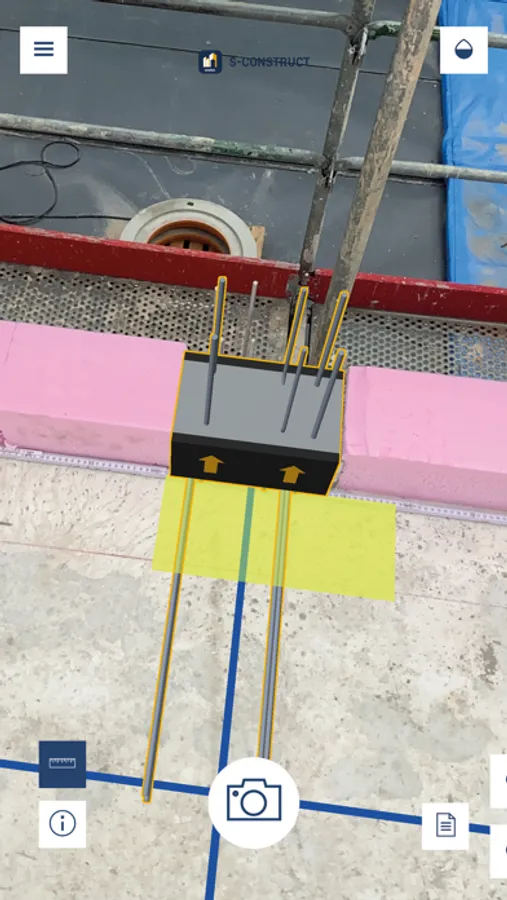 S-Construct supports the installation of Schöck Isokorb® type A and type F products by projecting 3D layout plans from the calculation program "Attika Tool" onto the construction site using augmented reality technology (AR).