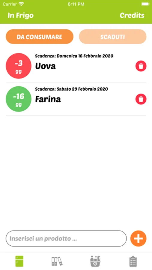 - una sezione dove poter inserire, con le relative scadenze, i prodotti appena comprati e che ti avviserà con una notifica sui prodotti da consumare prima della scadenza!