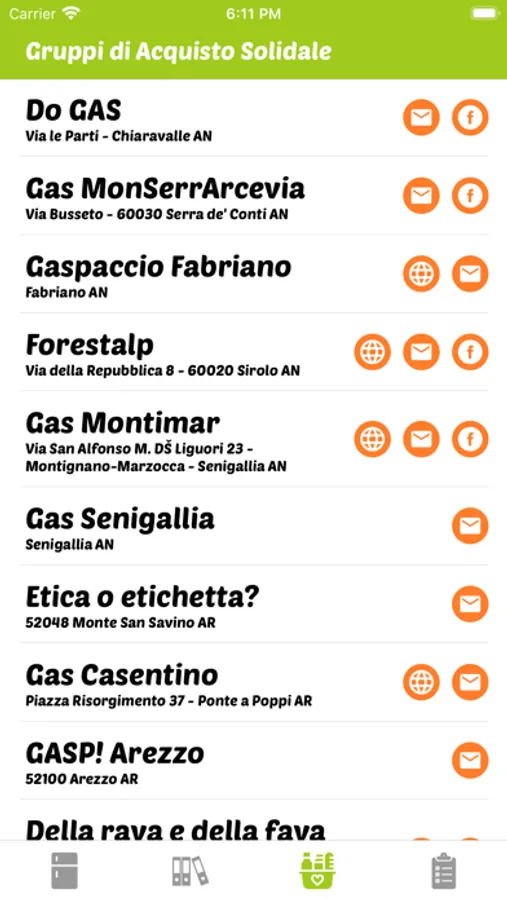 - una sezione con una lista di associazioni (gruppi d'acquisto solidale) che effettuano raccolte di alimenti, per poter individuare quello più vicino.