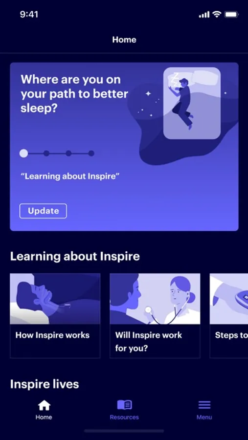 The Inspire Sleep app provides education on the Inspire therapy, connects prospective patients to physicians, and enables data sharing between Inspire patients and their clinicians. Download the app to: