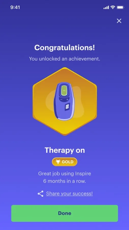 • Earn achievements and pair a Bluetooth-enabled Inspire Sleep Remote to the app to view your therapy usage data