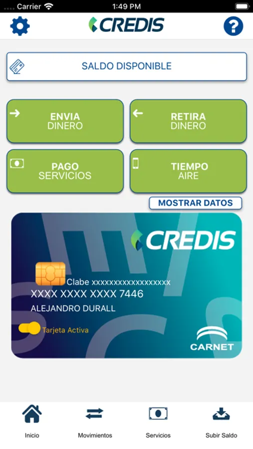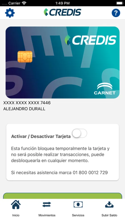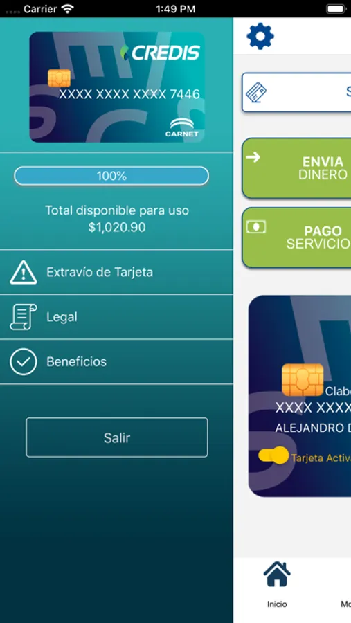 Aplicación para administración de tarjeta Credis. Consulta de movimientos, crédito disponible, envío dinero por SPEI y retiro de dinero en ventanilla y en cajeros, pago de servicios, compra tiempo aire y bloqueo temporal de tarjeta por extravío.