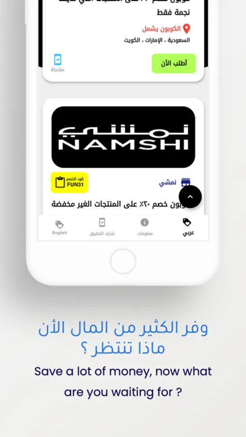Coupon online offers you the best discounts and seeks to provide the strongest and best coupons and offers in order to provide a service that will satisfy you. Coupon online is designed in a beautiful and easy to use way and presents you with the coupon details. If the coupon does not work or you want to make suggestions or inquiries, please contact us, Contact information is contained within the application, "Together we provide a service worthy of us and you"