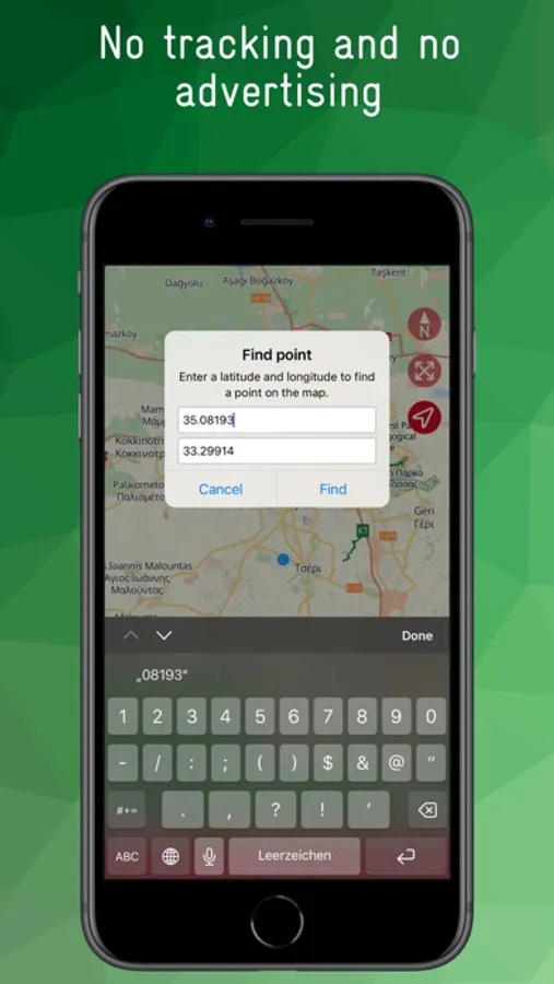 A location function shows the current position, the app is ad-free and there is no tracking.