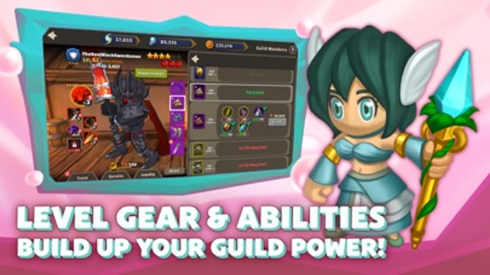 Craft equipment and weapons for your Guild Members. 300+ armor and weapons spread across 20 rarities and 17 classes! Crafting is so easy and extremely powerful! Gear up your Guild Members to unlock their maximum potential!