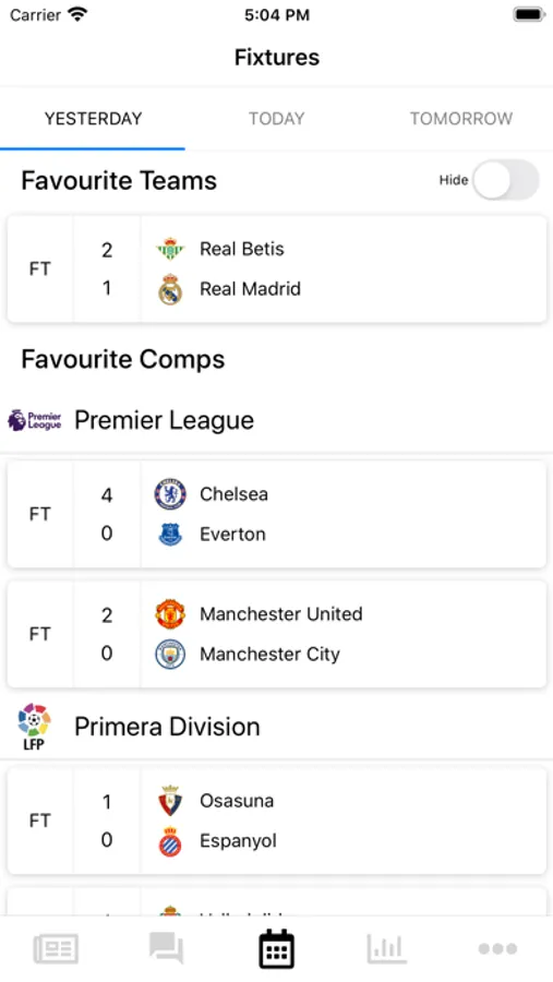 A lot of apps have too much information, we are trying to keep this information down to just your favourite teams and competitions you want to follow. Once you choose your comps & teams the fixtures, live scores, stats, lineups and results will be readily available for you to check out.