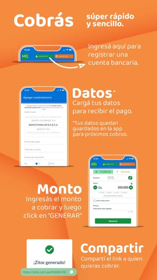Sólo tenes que descargar al aplicación y registrarte con la o las cuentas bancarias a las cuales queres recibir tus cobros.