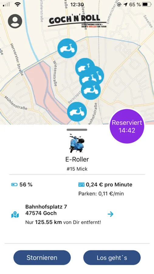 Willst du die Miete beenden, stellst du das Fahrzeug an einem geeigneten Ort ab und legst beim Roller die Helme zurück in die Box. Dann nur noch in der App auf Miete beenden klicken – dadurch schließt sich die Box und der Goch`n`Roll Scooter ist abgegeben.