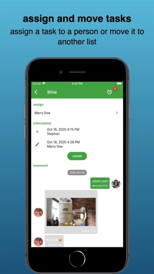 - comment function incl. pictures for the tasks
