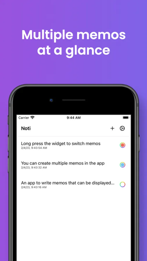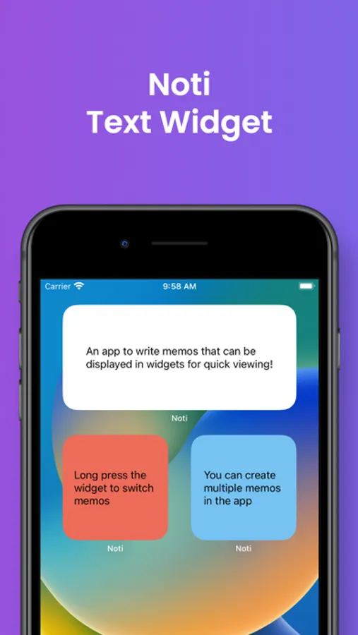 Noti is a simple memopad app that also allows you to view your notes in a widget on your homescreen - or wherever you decide to put it.