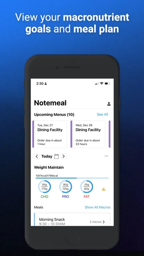 The Notemeal mobile app allows athletes to log food in a number of ways. The athlete can search through Notemeal's performance-friendly food database to log their intake, or snap a quick photo of their food, sharing either with their team dietitian.