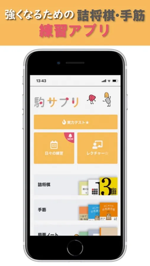 ・詰将棋と手筋という、将棋を強くなるために必要なテクニックが詰まった問題に毎日取り組める将棋練習アプリ。