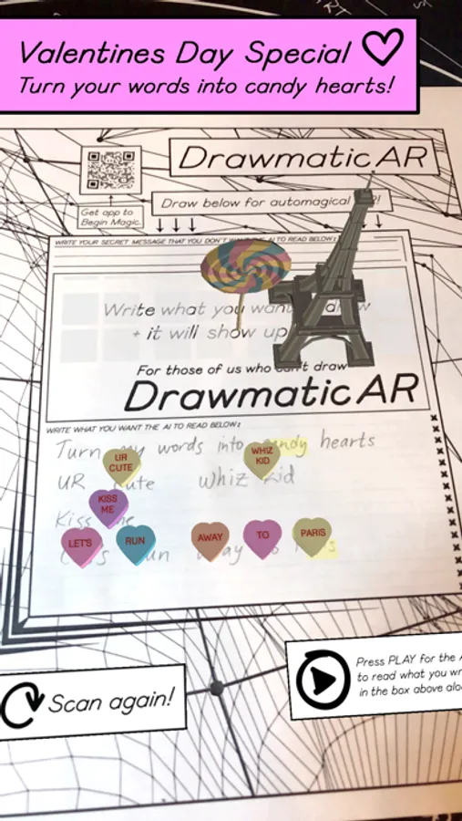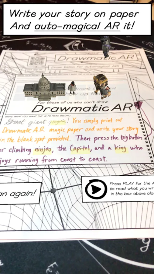Point the app at Magic Paper and press the big button on the paper and see and hear what the AI reads from what you wrote!