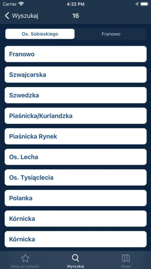 Wyszukiwarka - ułatwia szybkie odnalezienie przystanku, który Cię interesuje.