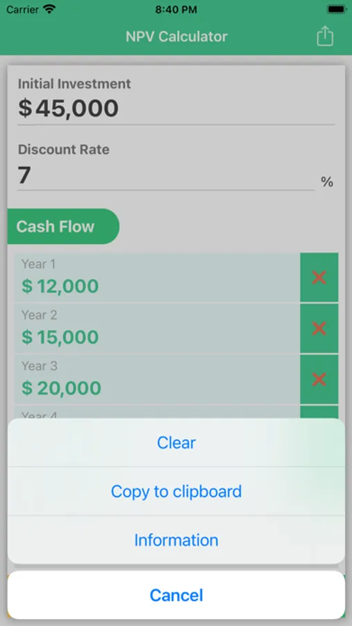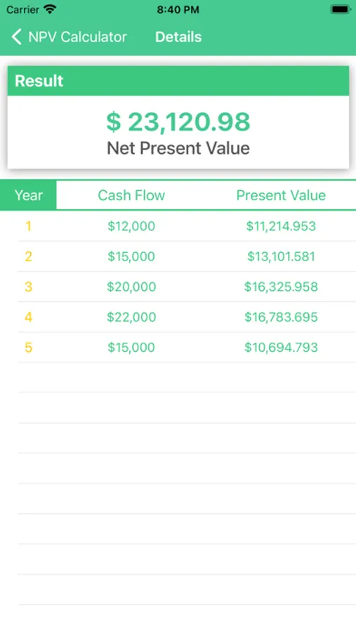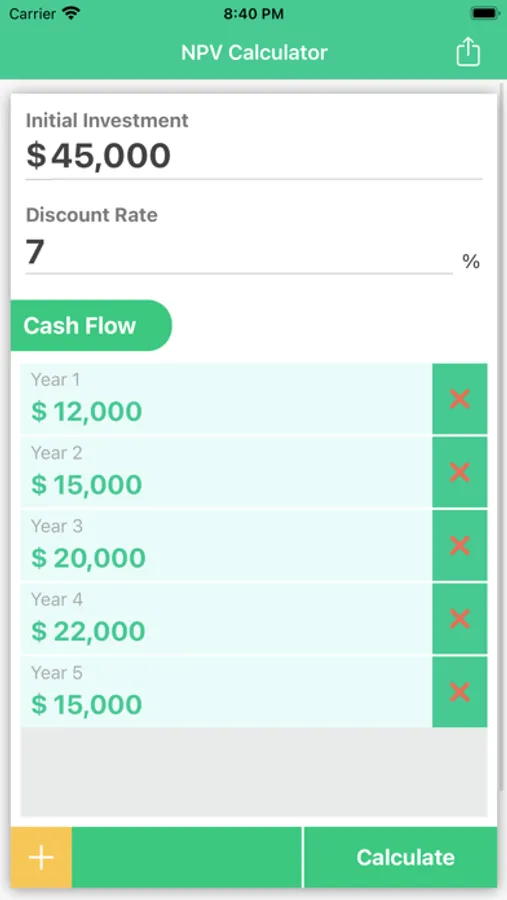 Use this app to calculate the net present value (NPV) of a series of future cash flows. More specifically, you can calculate the present value of uneven cash flows (or even cash flows).
