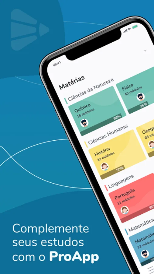 - Temas de disciplinas de todas as áreas de conhecimento, organizadas com vídeos, listas de exercícios e apostilas.