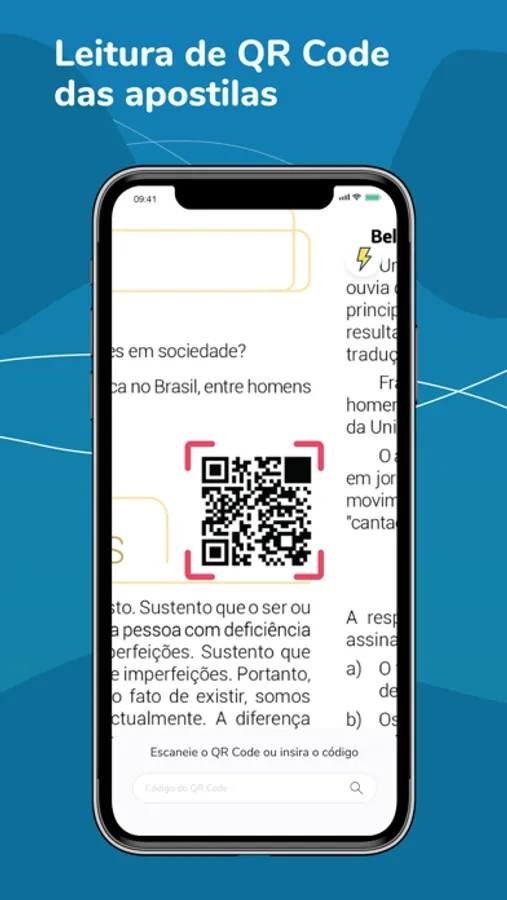 - Leitor de QR Code para uso exclusivo nas apostilas do sistema de ensino da rede.
