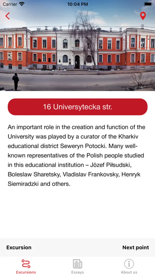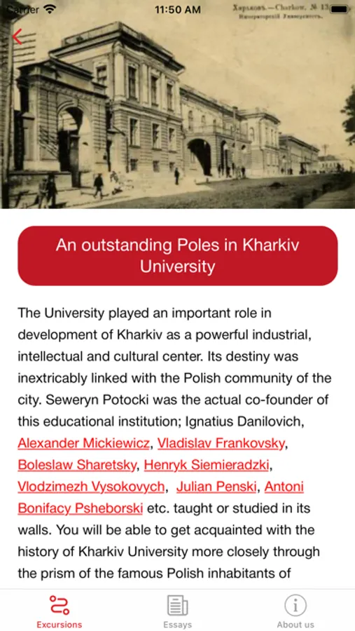 The availability of three language versions of the content (namely Ukrainian, Polish and English) lets a wide range of people both in Ukraine and abroad access this knowledge. "Polish Heritance in Kharkiv" addressed to everyone interested in the history of Polish community of Slobozhanshchyna and wished to know anymore about its prominent representatives, their contribution to the world culture and history. Mobile application can be also used as a digital helper for tourists who want to make themselves walking tours through the streets of Kharkiv.