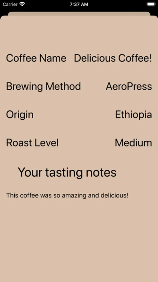 This app helps you to record your daily coffee intake. You can save the country of origin, roast level, brewing method, and more! Then you can go back later to look back and remember all the great coffee drinks you've had.