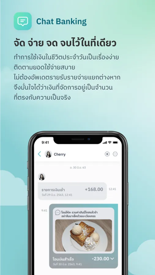 2. Chat Banking: การแสดงประวัติรายการในรูปแบบแชท รายการที่ไม่ต้องตีความ หมดยุคของเลขบัญชี xxx-x-xxxxx-x ที่ไม่รู้ว่าของใคร หรือภาษาเเบ้งกิ้งชวนเวียนหัว เพราะ MAKE โชว์รายการในรูปแบบแชทเข้าใจง่าย แยกเป็นรายคน แถมเเนบโน้ตกับรูปได้ด้วย