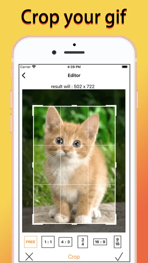 Crop and Resize your GIFs like a professional photo editor. Choose from a range of versatile crop proportions, including freeform, classic ratios like 1:1 and 16:9, and more. Resize with precision by percentage or set specific dimensions effortlessly.