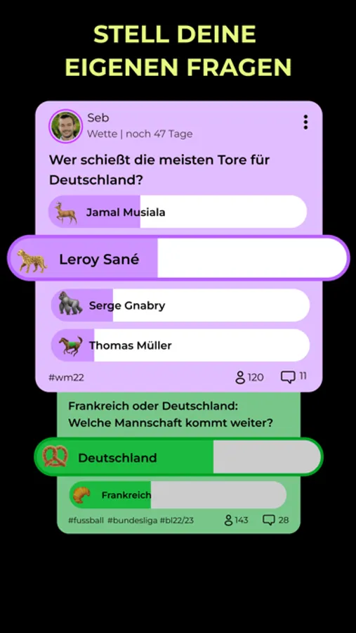 Dein Tippspiel war noch nicht dabei? Dann stell deine eigenen Fragen: