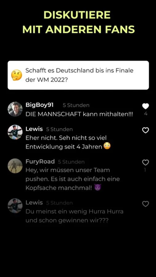 - Stell eigene Fragen – ganz privat an deine Freunde, oder an die gesamte Community