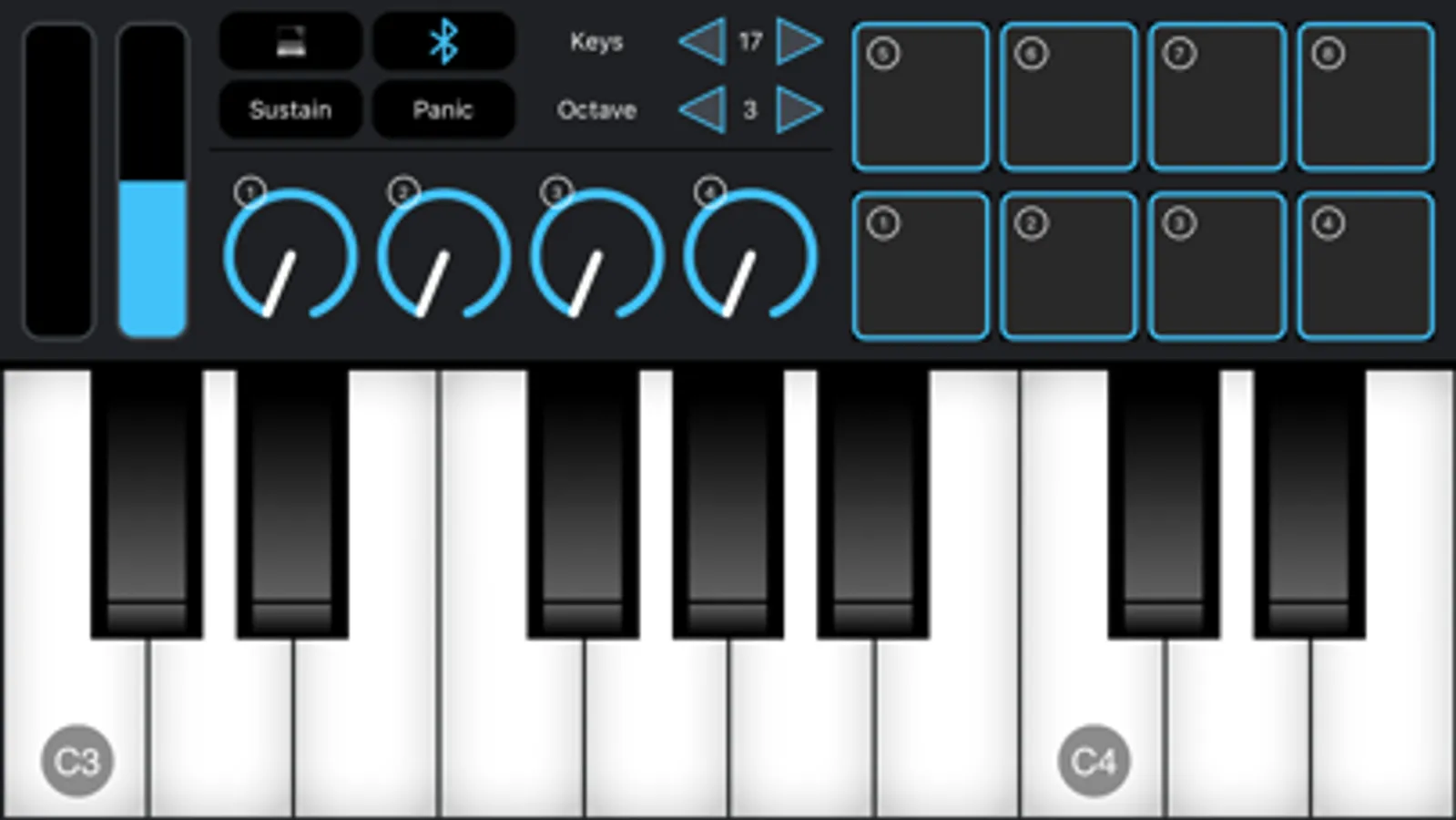 MIDI Controller App is a Midi Keyboard designed to easily fit in the musician's pocket and still can be used in big music studio. Use the piano keys to play midi notes, trigger drum samples using drum pads, apply pitch bend and modulation with sliders and control midi cc (control change) with rotary controller knobs.