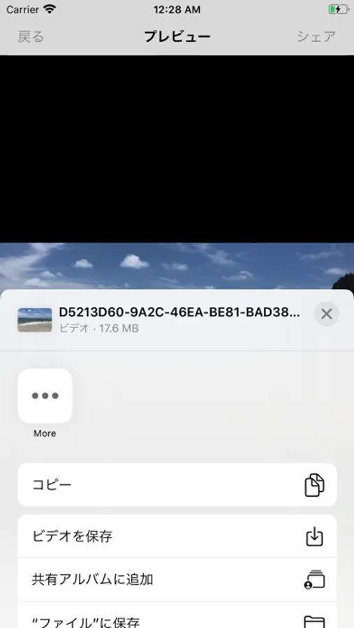 6.完成された動画を見て、内容が問題なければ、シェアボタンを押します。Facebook, メッセージ, LINE, メールなどの共有メニューが表示されるのでムービーをそのまま共有できます。