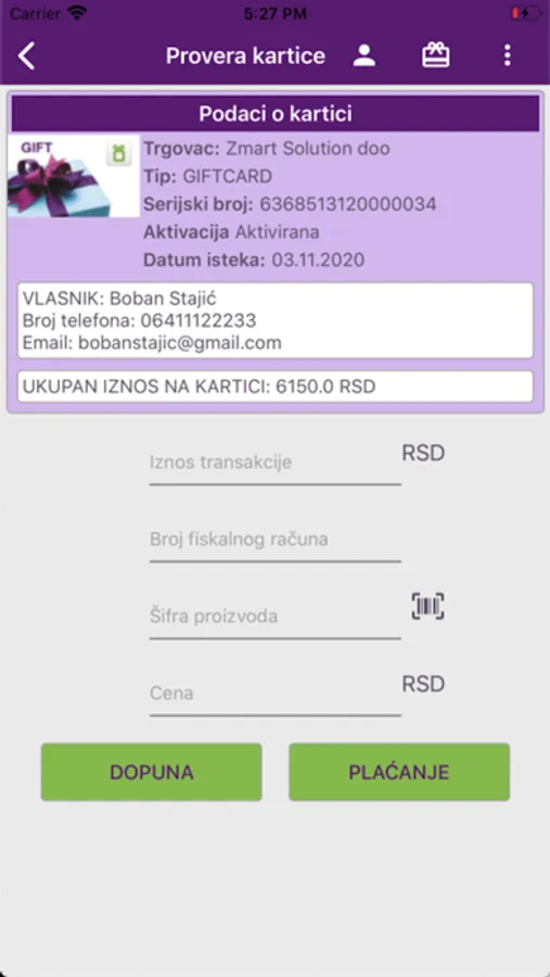 With our GiftOnCard application, you will always carry all your Gift and Loyalty cards with you, without fear of their loss.
