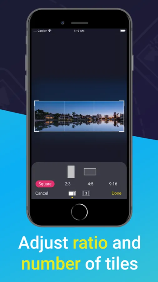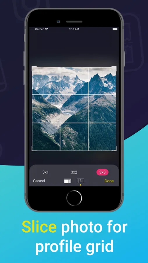 + Slice the photo for swipeable panorama (1:1, 2:3, 4:5, 9:16, 10:16, 16:9, 3:2, 5:4)