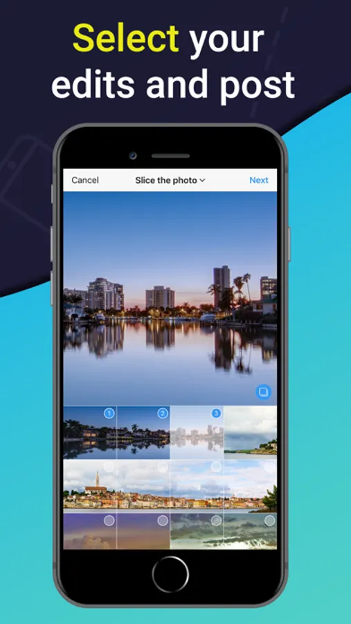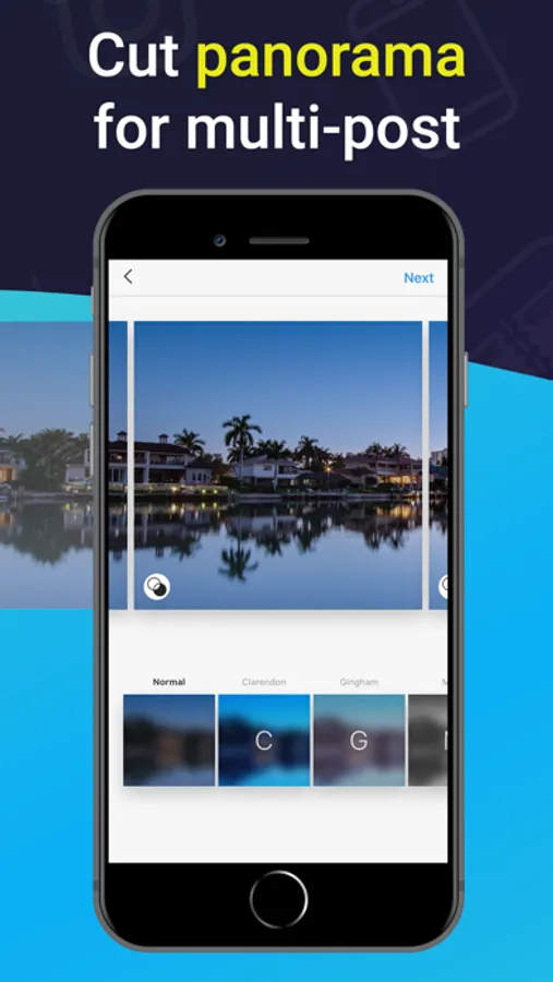Your videos and sliced photos are saved to your camera roll and “Slice the photo” album in appropriate order for Instagram photo picker, and we retain the quality of your panoramas while keeping the original file intact. To post as a multi-photo post on Instagram, just select the pictures and upload. Your followers will be able to swipe through your panorama using Instagram's carousel.