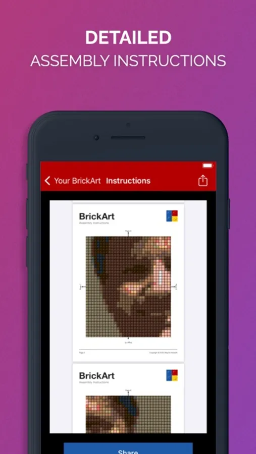 BrickArt is a fun photo app that turns your favourite photographs into amazing brick mosaics you can build using Lego bricks!