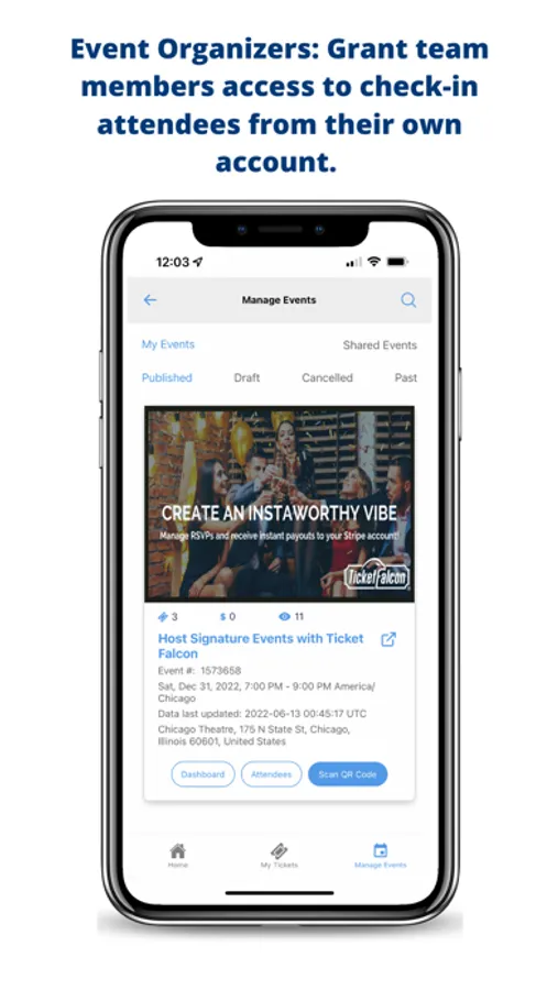The real-time check-in status of tickets across all authenticated devices allows event organizers to stay informed. Additionally, our app eliminates the chance of Attendees committing ticket fraud during check-in as Attendee tickets update in real-time once checked-in.