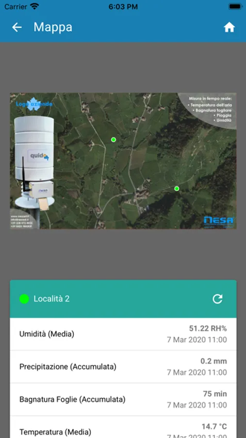 For a quick view of the network stations, main window is a geo-referenced map where you can easily check stations health and summary view last data acquire.