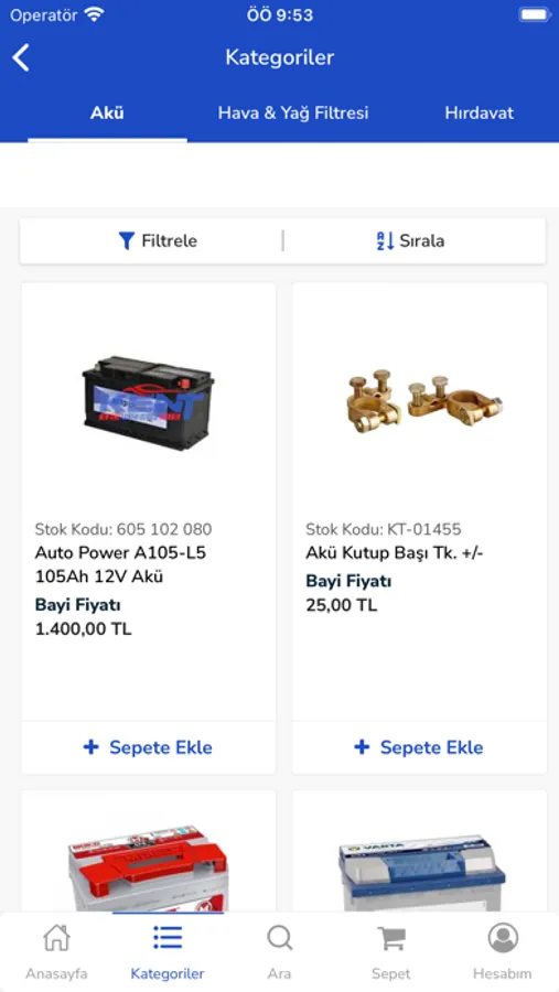 * Ürün kategorilerinde filtreleme yapabilirsiniz