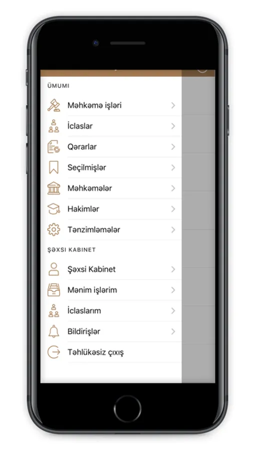 "Azemis" Mobil Elektron Məhkəmə İnformasiya sistemində yaradılımış proses iştirakçısının iştirak etdiyi iş üzrə prosesin gedişi, çıxarılan qərarlar, onların icra vəziyyəti, onlardan verilən şikayət və ya protestlər barədə məlumat almaq imkanlarına malik “şəxsi kabineti”.