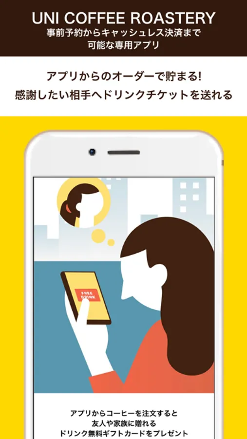 UNI COFFEE ROASTERYのアプリにご登録いただくと、感謝したい大切な人へドリンクチケットをアプリからお送りできます。また、アプリ上からオーダー、モバイル決済できるほか、新作情報のお知らせや店舗検索など様々な機能をご利用いただけます。