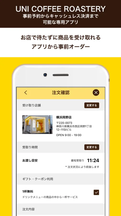 お好きなUNI COFFEE ROASTERYの店舗を選んで、オーダー&お支払いできます。忙しい方などお店で並ばず商品を受け取れます。