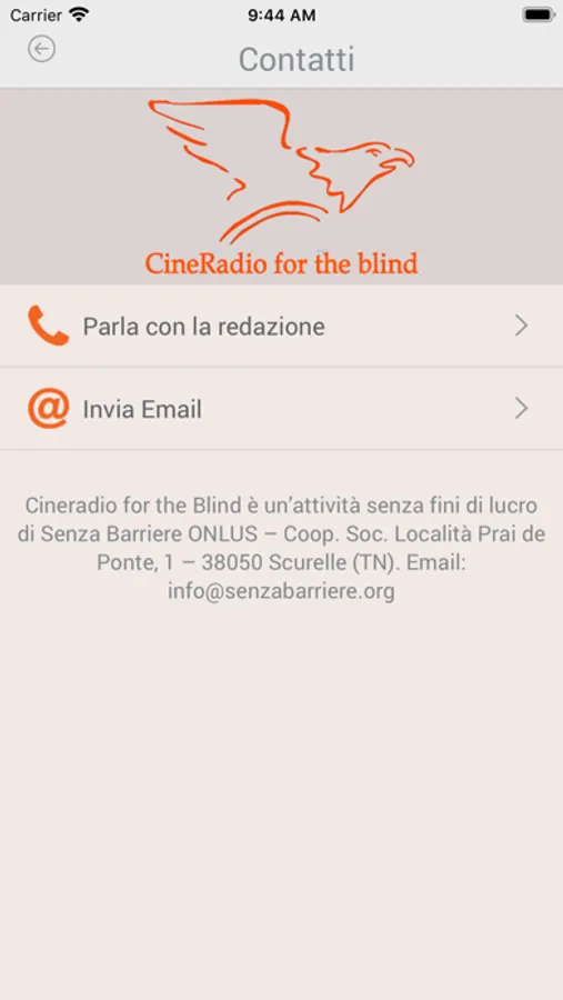 Le colonne sonore dei film, la storia del cinema, i doppiatori italiani, i film audiodescritti, le recensioni, il cineaudioforum, le dirette e molto altro ancora accompagneranno i ciechi nell’universo cinematografico audiodescritto, passato e presente. Solo i privi della vista, con una gratuita e personale password, possono ascoltarla!