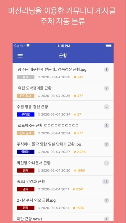 인터넷 커뮤니티 게시글을 주제별로 분류하여 모아서 보여줍니다.