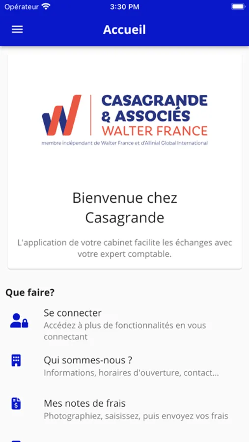 Because the world is changing, we offer you a handy application for managing your online account 7days/7 and 24h/24. This ease of use allows you anytime access to your documents, consult the news of the firm, or to gain visibility on various activities related to your record. We wish you a nice navigation!
