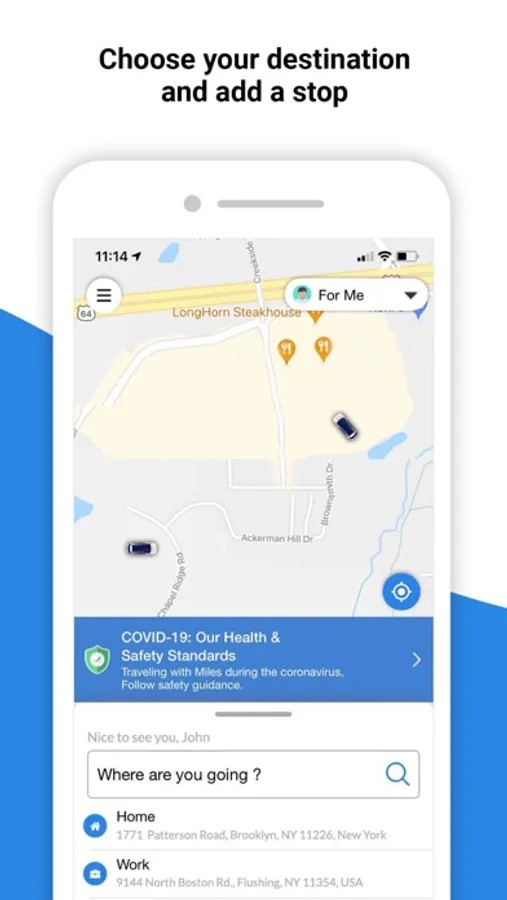 . Miles's partner will be at your location in minutes, ready to take you to your destination.