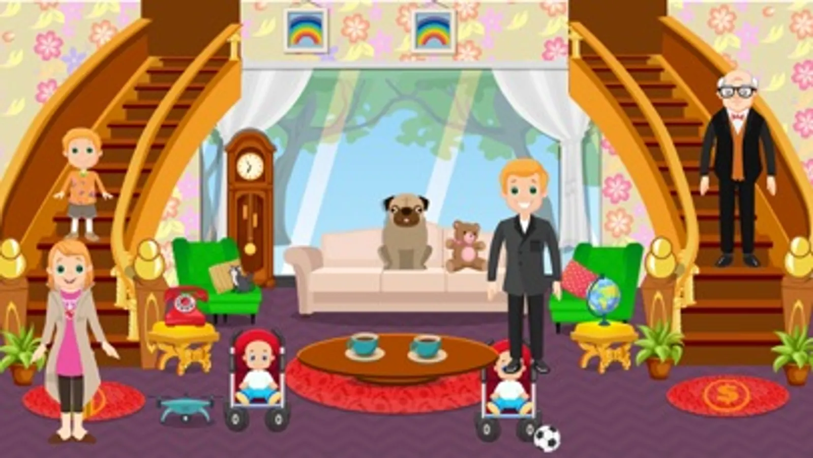 Hey little kid! It’s time to pretend play game where you try life style of a millionaire family. Join the big mansion and discover the fun in their life. Explore all rooms of the home and play with intractable props and toys. Checkout the car garage and bikes or helicopter on the helipad. The fun never ends when you can have all things at home. Explore tv lounge, pool side, bedroom and kitchen.
