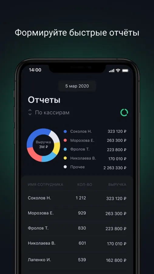 — Отчёты: какие блюда больше покупали, кто из официантов лучше продавал, как гости платили (картой, наличными, бонусами).