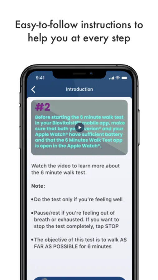 The BiovitalsHF-B11 is an investigational mobile health software application intended for capturing patient-centered outcome measures in heart failure patients. The app is intended for Research Use Only, and not intended to be use for diagnostic or clinical purposes. The software enables continuous acquisition and monitoring of multiple physiologic data using readily available biosensors - Everion® and Apple Watch Series 5. The app also features ability to capture PROs using validated scales and guided mobile-based 6 Minute Walk Test. The app integrates HealthKit, including Health app, for the 6 minute walk test.