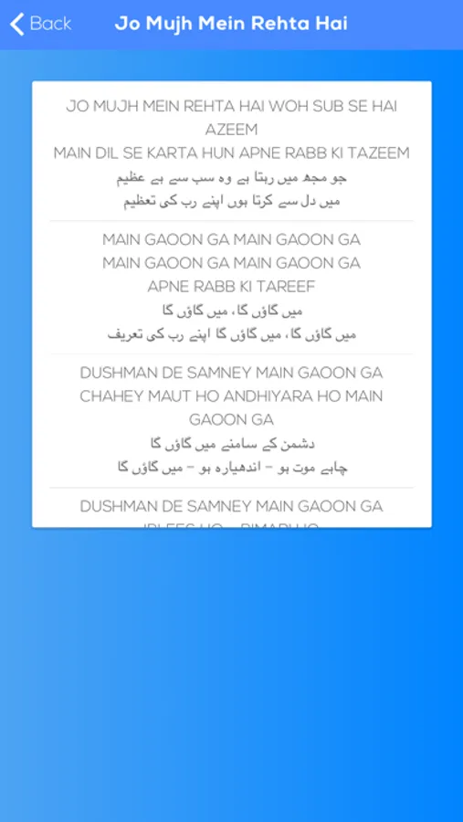 • All GEET and ZABOOR are displayed on main screen so you can easily find by title if you don't remember its number.
