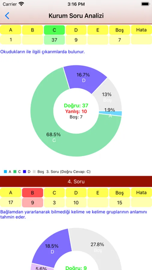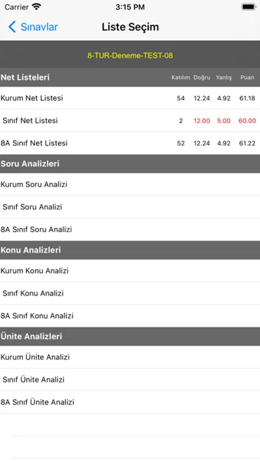 Kurum ve şube/sınıf bazında net ve puan listelerini, soru analizlerini, kazanım analizlerini rahat bir şekilde sadece okuma yaptıktan sonra inceleyebilirsiniz.