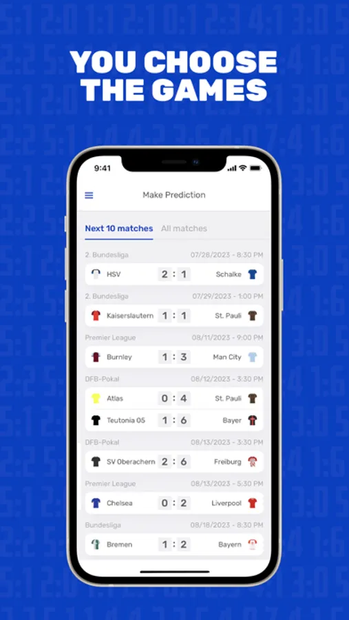 Create your own bet slip and predict on as many matches from different competitions as you like. Just one selected match day or a colourful mix of matches – the choice is yours.
