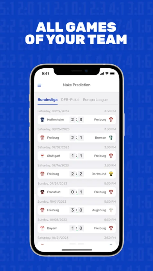 Predict on all the matches of your favourite team in one prediction game group throughout the full season. If you like, you can also select up to three favourite teams.